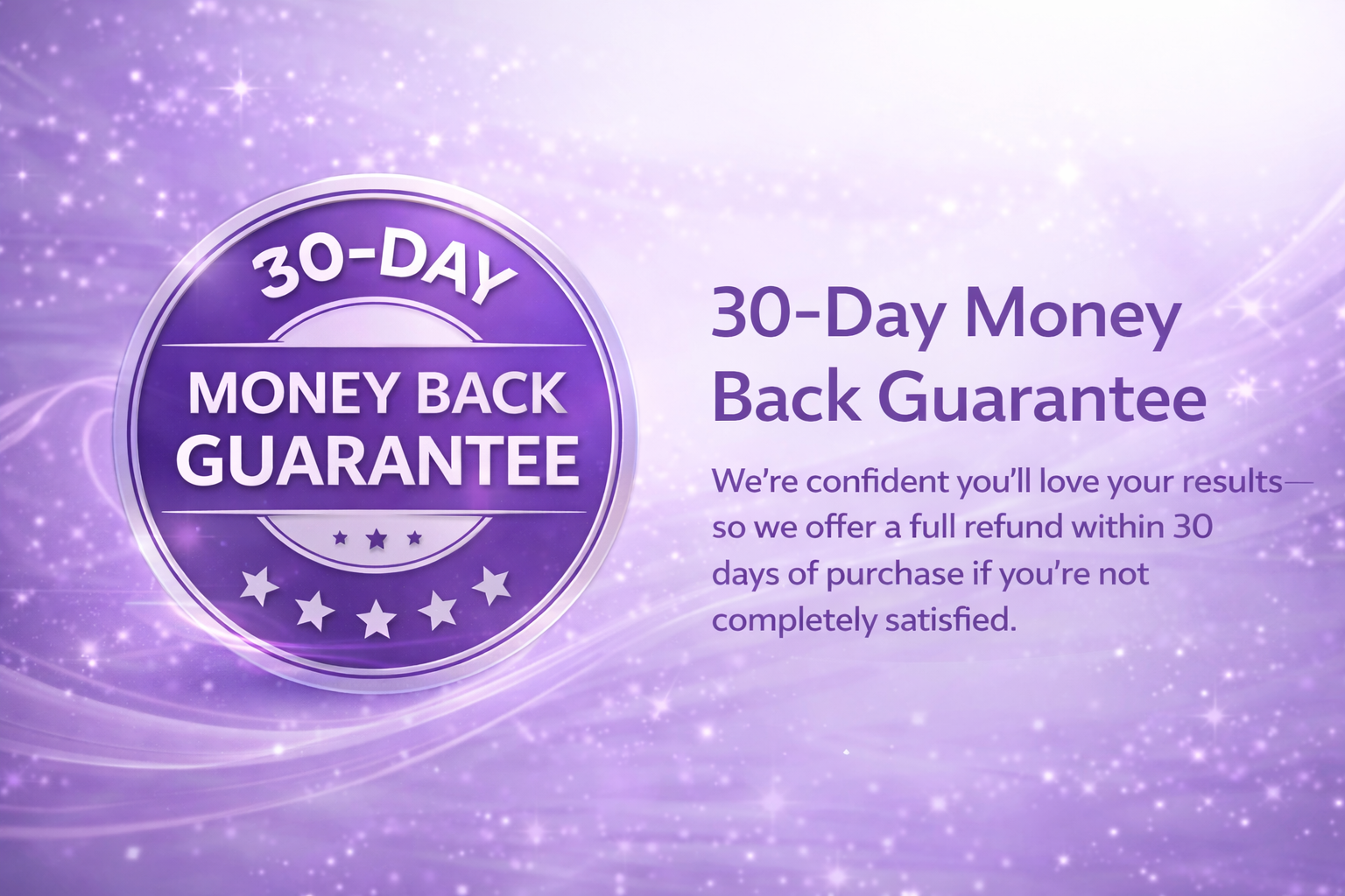 We stand behind our product with a 30 day money-back guarantee—if you’re not satisfied with your results, contact us within 30 days for a full refund.